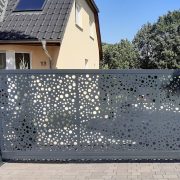 So entsteht aus der technischen Schiebetoranlage ein Bauteil, das sich stimmig in Zaunanlage, Gebäude und Grundstück einfügt.