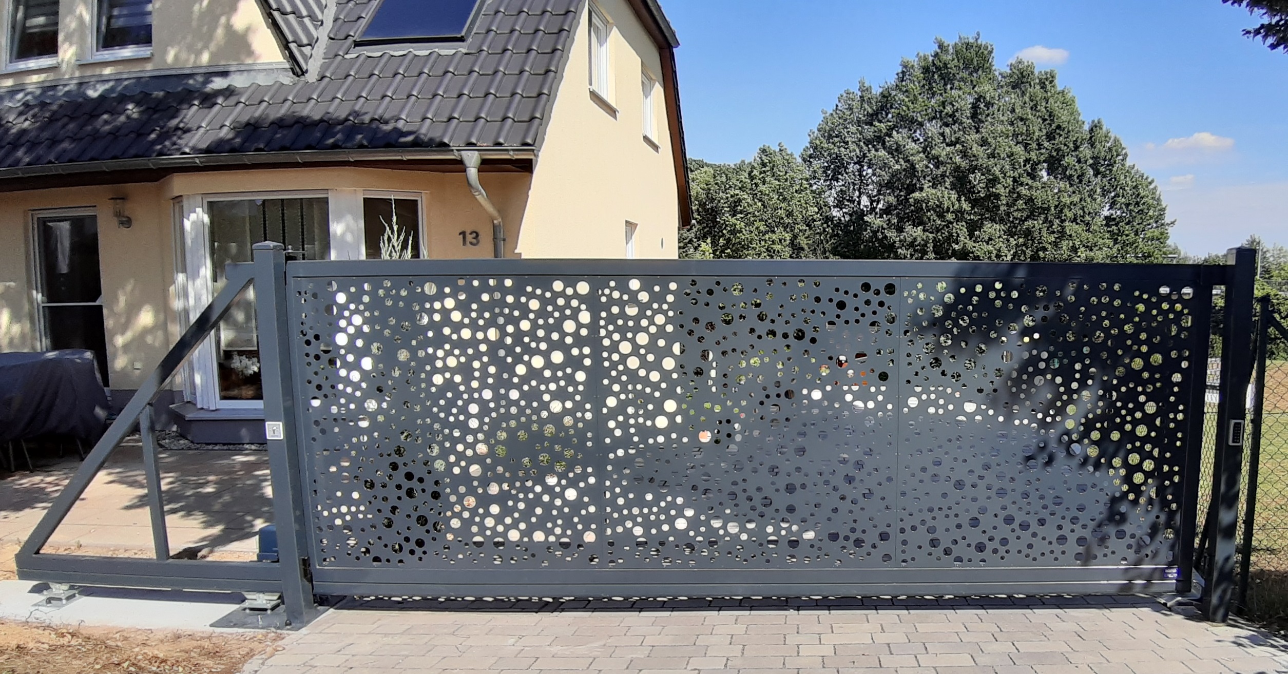 Ob Einfamilienhaus, Firmengelände oder Logistikfläche: Wir entwickeln gemeinsam mit Ihnen ein Schiebetor, das zur Breite Ihrer Einfahrt, zur Nutzung und zur Gestaltung von Zaun und Gebäude passt.